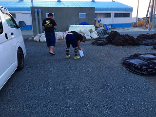 漁師さんが使う編みの下にラインの切ったクズ、吸い殻、ペットボトル、フックなどなど